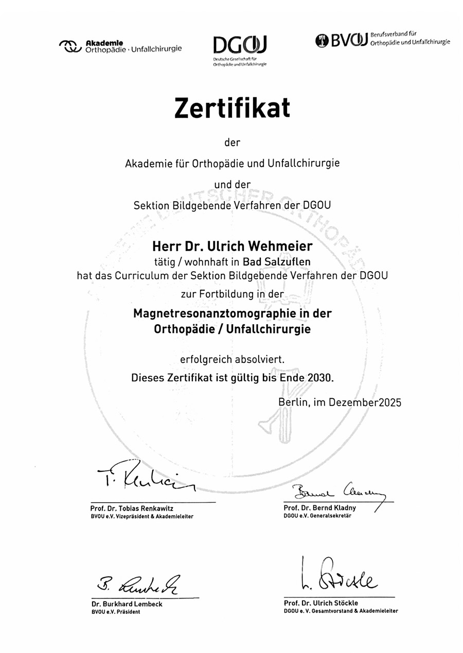 Zertifikat Magnetresonanztomographie in der Orthopädie / Unfallchirurgie